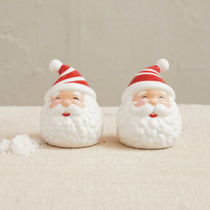 This hand-painted salt and pepper shakers set captures the jolly spirit of Santa in a playful white and red design, is a festive treasure for any holiday collection.