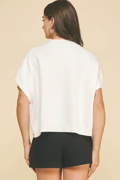 This extra soft Stone Embroidered Sweater features charming stone embroidery, a playful round neck, and flirty cap sleeves. Designed with a comfort fit, it’s your new go-to for effortless style.
