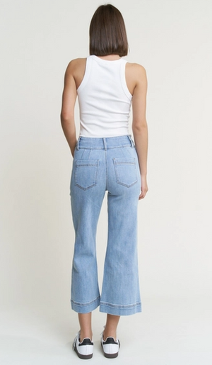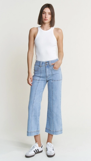 These super high rise wide crops are here to elevate your denim game. The light French denim brings an airy, relaxed aesthetic, while the cropped length and generous wide leg create a modern silhouette that works with sneakers, heels, or anything in between.