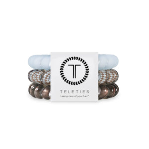 Truly Taupe Large Hair Ties in Blue and Taupe offer a strong grip without damage, doubling as a chic wrist accessory when not in use. Your new favorite hair essentials all year round. Strong grip, no rip design for all-day hold Doubles as a stylish bracelet Durable and waterproof for all occasions Gentle on hair—prevents breakage, headaches, and creases Sold in packs of three.