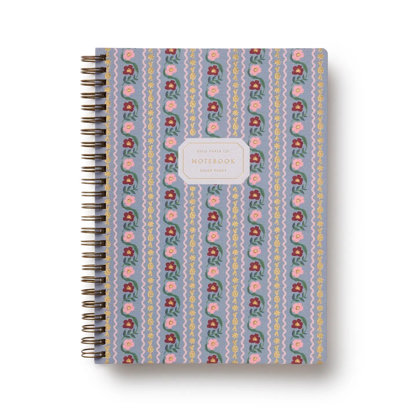 Printed on heavy-weight textured paper, this softcover spiral notebook features an illustrated cover with gold foil accents. The notebook has 150 ruled, perforated pages, a sturdy double-spiral binding, and pockets for extra storage.