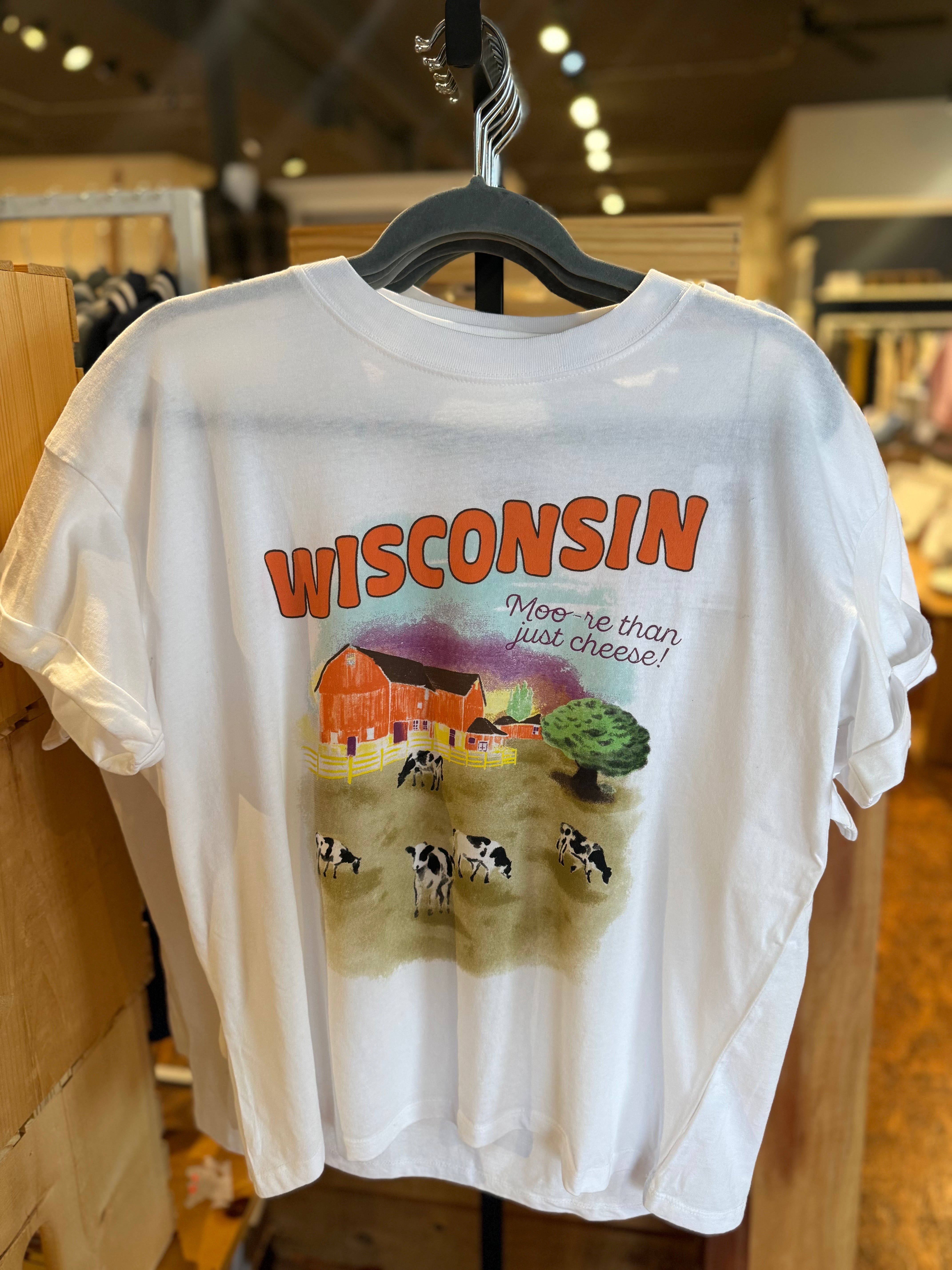 Wear your Badger State pride with this fun Wisconsin Graphic Tee! Perfect for locals and visitors alike, this comfortable cotton tee features eye-catching artwork celebrating everything great about Wisconsin. Whether you're cheering on the Packers, enjoying a Wisconsin cheese board, or just showing off your home state love, this tee is your go-to casual essential. Soft, durable, and ready for any occasion—from game day to everyday wear.