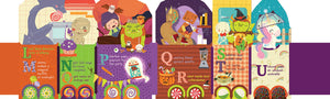 All aboard the Monster Train! Join Dracula, the Headless Horseman, Frankenstein’s monster, the Kraken, and other spooky creatures on a train ride that teaches the alphabet to your little monster. This adorable two-in-one, sturdy, die-cut board book unfolds into a 56” train (perfect for playtime or room decor!). Printed on both sides with boldly colored and hilarious monster illustrations, the book includes a handy velcro clasp to keep everything snuggly shut when reading time is over. A perfect interactive primer for teaching letters to kids, Monster Train provides that colorful, educational, and toy-like experience that makes learning fun.