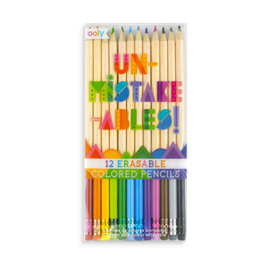 Color draw and write without worry because Unmistakeables colored pencils are totally erasable. This wondrous colored pencil set of 12 has a special colored pencil lead that's erasable. So there's no problems if you find a mistake in a coloring book, in your drawing or in your color coordinated notes. And just for convenience Unmistakeables colored pencils have erasers on top, but you can use any eraser you like. So color AND erase away!